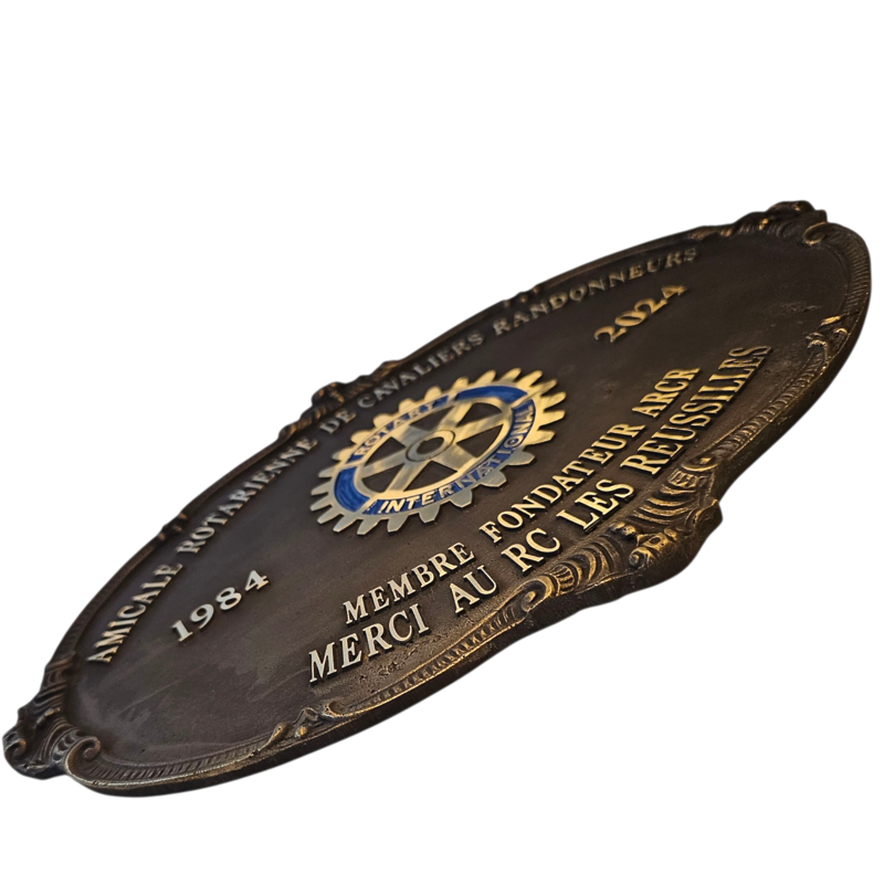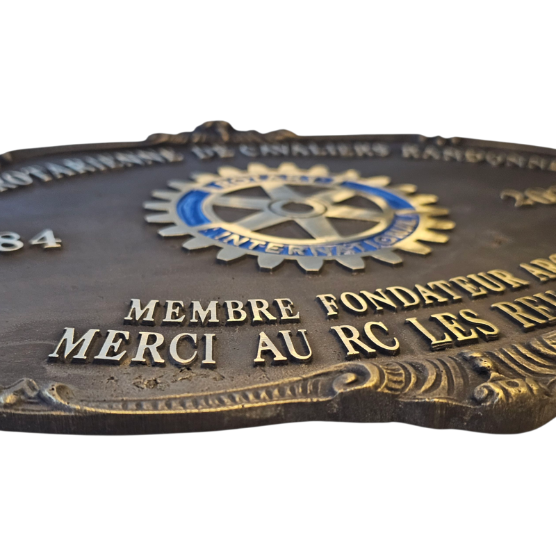 Plaque en fonte laiton en relief, fabriquée entièrement à la main de manière traditionnelle.